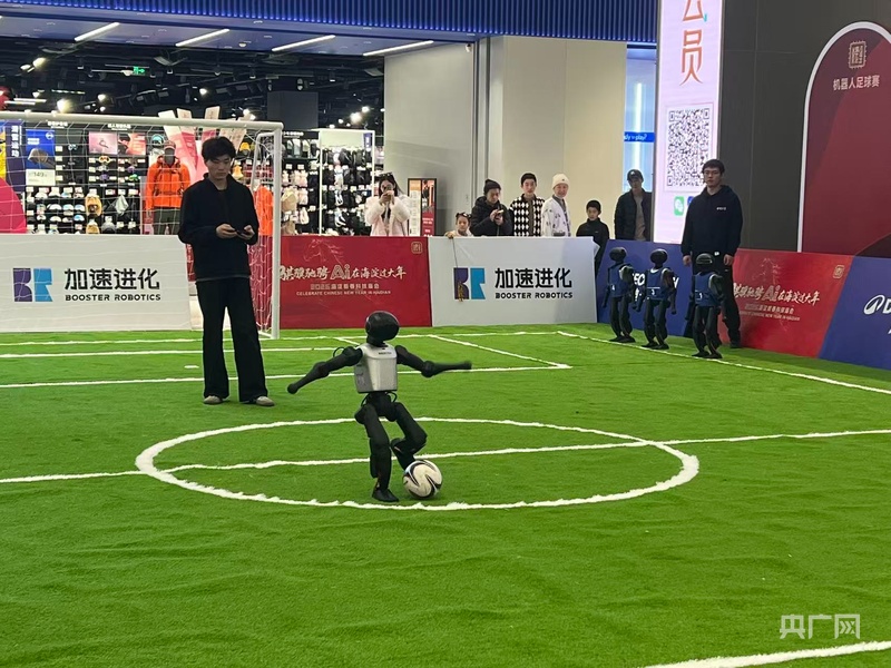 另一边,脱下瑞狮锦袍稍事休息的Booster K1,又换上足球队服现场踢起了3V3足球赛。射门、传球时需要精确欺压腿部力度,既保证动作有用,又得幸免力渡过大或过小出现造作,机器东说念主们上场之后,还得相互商榷商榷谁厚爱传球、谁来射门。