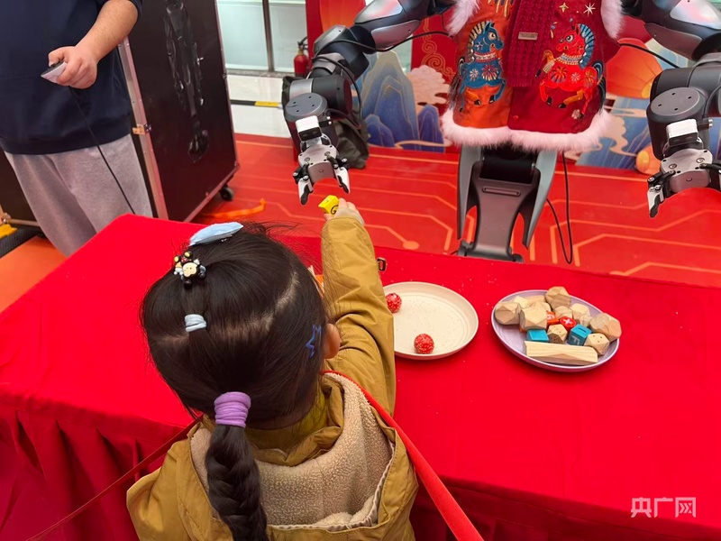 “赛博瑞狮”退场,途经千寻智能“小墨”展台。它正在庙会现场串“糖葫芦”。“小墨”要先通过机械臂稳稳握起一根细长的竹签,再通过视觉识别,精确定位一颗颗委宛阔气的山楂,休养角度后热心且有劲地将竹签瓜代穿过山楂。它还不错复刻东说念主类搭积木的经过,将时势互异的积木,逐块垒砌。